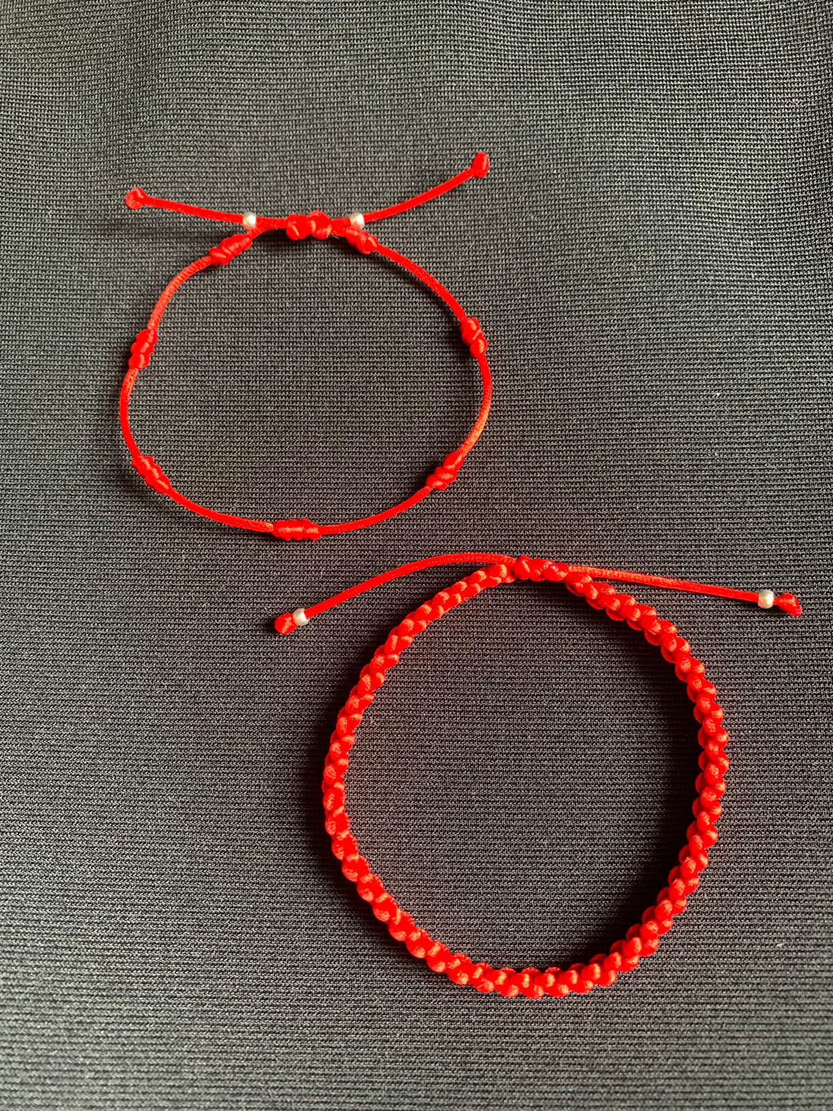 Pulseira vermelha com 7 nós para proteção, ajustável e pulseira macramê, ponto básico, ajustável